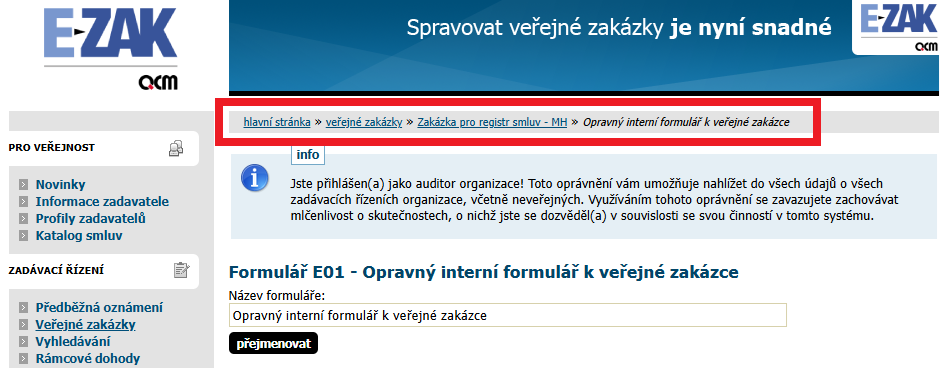 Díky ní snadno poznáte, kde se právě nacházíte, a můžete se jedním kliknutím vrátit na předchozí úroveň (například zpět na detail zakázky nebo na hlavní stránku).