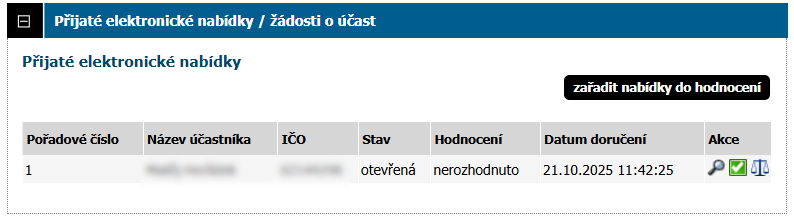 V bloku Přijaté elektronické nabídky máteve sloupci akce na výběr několik ikon.