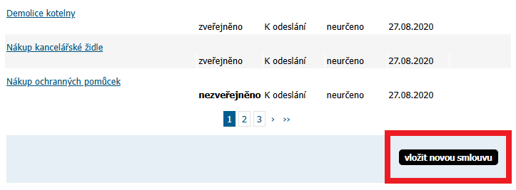 Buď přímo z veřejné zakázky, nebo novým záznamem na přehledu smluv.