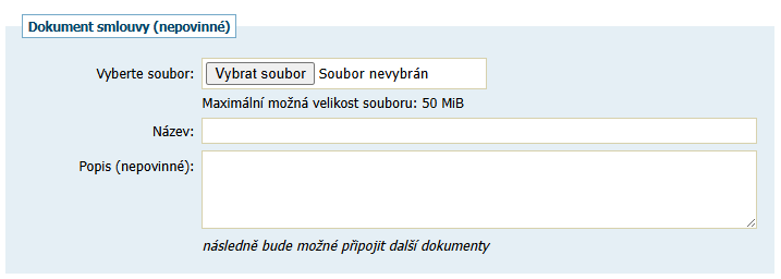 V sekci Dokument smlouvy (nepovinné) se nahrává daná smlouva.
