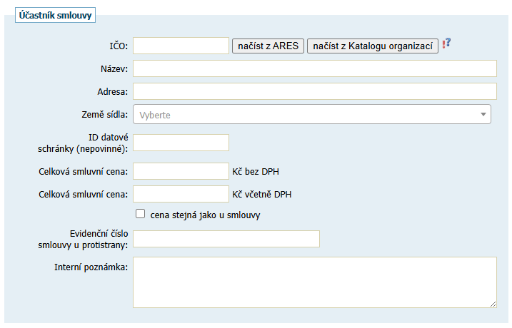 V sekci Účastník smlouvy lze vyplnit informace o dodavateli, s nímž byla smlouva uzavřena.